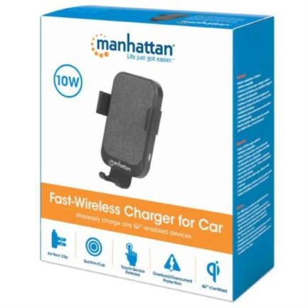 Cargador Manhattan Inalámbrico Rápido Celular para Auto 10W Color Negro
