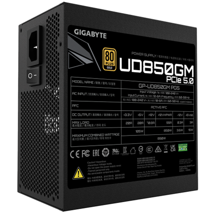 Fuente de Poder Gigabyte (D90)GP-UD850GM PG5 850W ATX 12V 80 Plus Gold Modular PCIe 5.0 20+4 pin Fan 120mm Negro