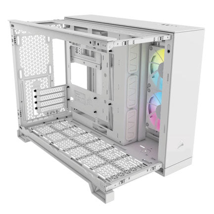 Gabinete Corsair iCUE Link 2500X Mid Tower mATX ITX Cristal Templado Pecera 2xFan RGB Blanco Sin Fuente