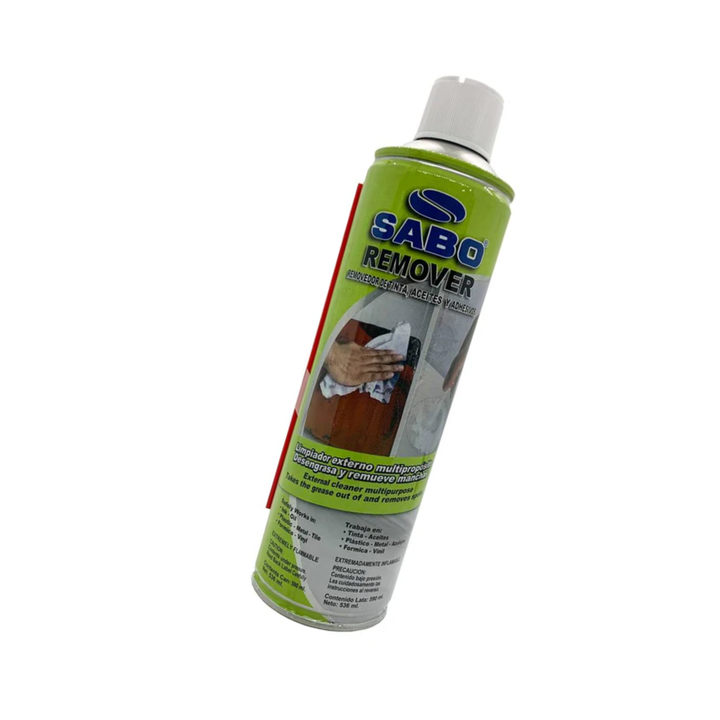 El REMOVEDOR DE TINTAS Y MANCHAS SABO (590 ML) es un fuerte removedor formulado para eliminar manchas y suciedades difíciles y adheridas a las partes externas de equipos eléctricos, electrónicos y de oficina. Su fórmula a base de limpiadores alifáticos descompone con facilidad una amplia gama de contaminantes.