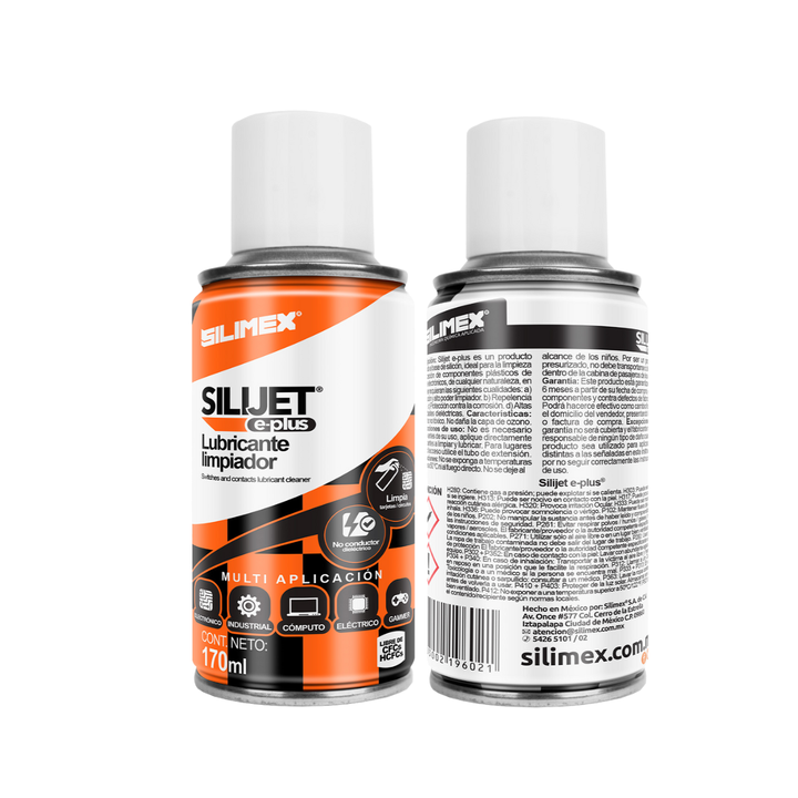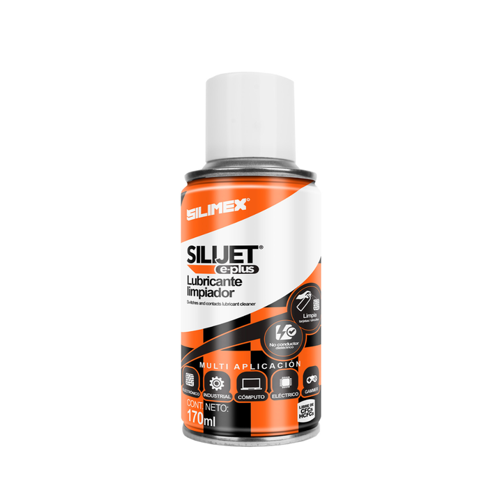 Silijet E-plus de SILIMEX es un producto multi-funcional de 170 ml formulado a base de silicón. Es la solución ideal para la limpieza, lubricación y protección de los componentes plásticos y mecánicos de equipos electrónicos. Ofrece un poderoso efecto limpiador y, simultáneamente, actúa como un lubricante duradero.